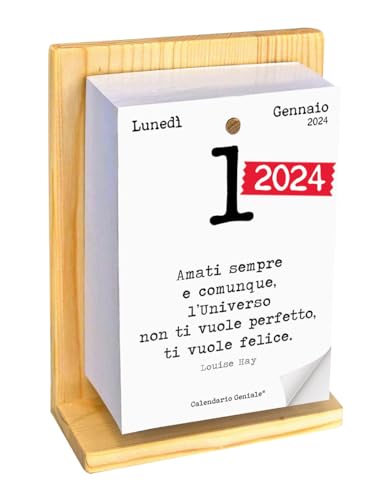 Calendario Geniale 2024. L'Originale. Supporto Legno di Abete Naturale Biologico. Idea Regalo. Il Primo con Bonus digitali. Leggi ogni giorno una frase e il pensiero Filosofico. Calendario con scatola